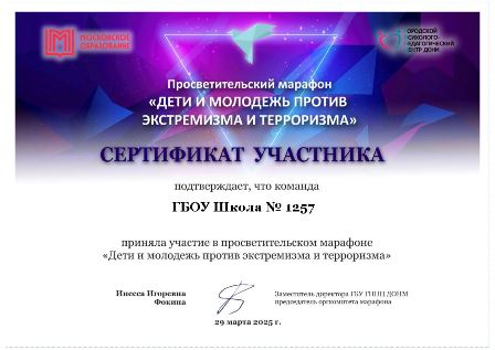 Команда учащихся нашей школы ежегодно является активным участником просветительского марафона "Дети и молодежь против экстремизма и терроризма". Так держать!